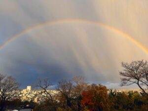冷たい風が吹く中、お火葬が始まりました。お見送りを終えてご家族が少しの間、その場を離れようとされた時、空が少し明るくなると小立野方面の空に綺麗な虹がくっきりと掛かったのです。端から端までの見渡せる半円を描くまさに「虹の橋」でした。それはまるで「これまでありがとう。ずっと大好きだよ」と、そらちゃんがご家族への想いを届けているかのようにも感じました。